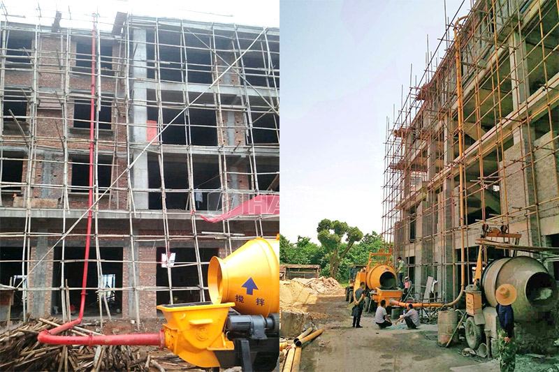 - 4. Applications larges. La puissance totale est beaucoup plus faible que celle des malaxeurs et des pompes à béton conventionnels, elle convient donc à la construction dans les zones rurales.