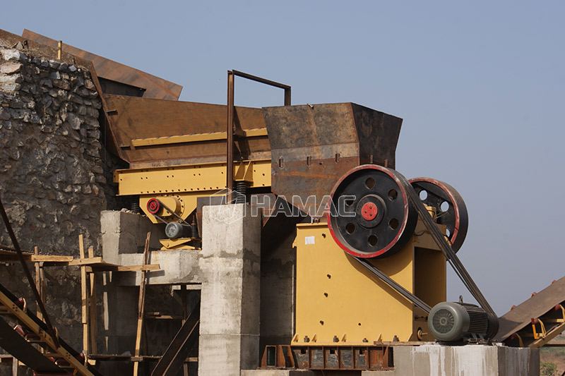 Généralement, un cadre, un arbre excentrique, une grande poulie, un volant, une protection latérale, une plaque à bascule, un siège arrière à bascule, une vis de réglage du jeu, un ressort de rappel, une plaque de mâchoire fixe et une plaque de mâchoire mobile font la mâchoire broyeur de pierres/roches. HAMAC a un concasseur à mâchoires série PE et un concasseur à mâchoires série PEX à vendre. L'adoption généralisée des concasseurs à mâchoires de la série PE concerne largement le concassage primaire de divers minerais et matériaux, tels que le concassage grossier et moyen. En plus pour les clients’ exigences, le concasseur à mâchoires de la série PEX convient au concassage de matériaux fins et moyens de plus petites capacités.