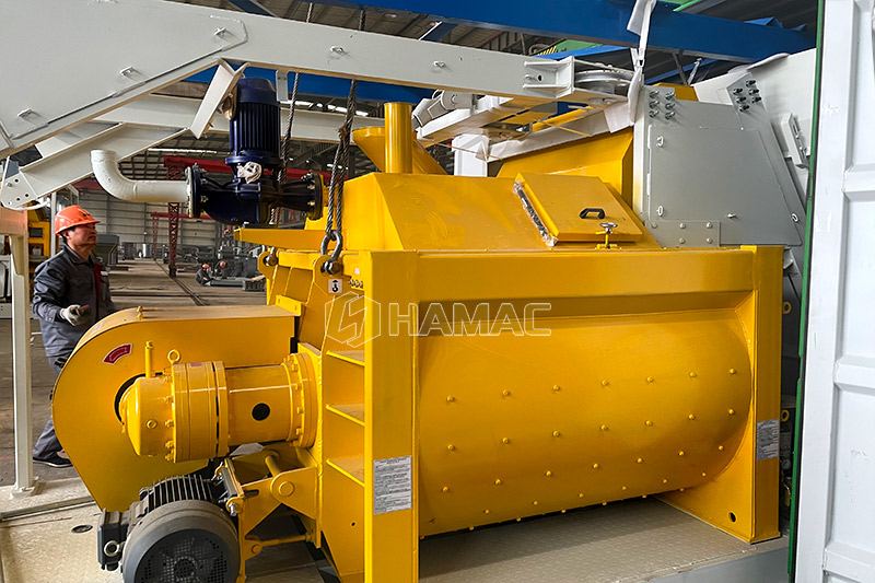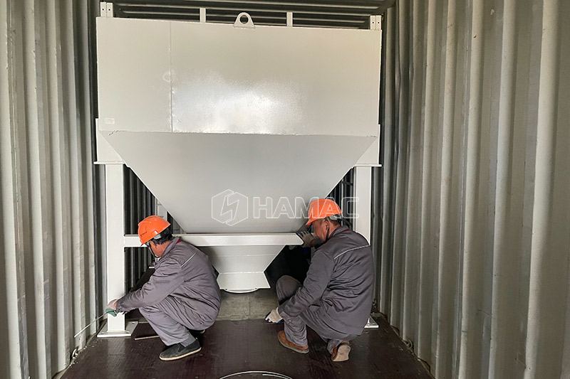 HAMAC fournit aux clients une centrale à béton prête à l'emploi d'une capacité de 25 m3/h à 240 m3/h. Nos centrales à béton à vendre sont équipées d'un moteur de marque célèbre, d'un cylindre pneumatique SMC, de vibrateurs WAM, de vannes WAMbutterfly, d'un malaxeur à béton à double arbre HAMAC js1000, de cellules de charge AMCELLS, d'un compresseur d'air KAISHAN et de composants électriques SCHNEIDER. Toutes ces pièces garantissent des performances de travail parfaites de notre centrale à béton. Ainsi, notre prix pourrait être plus élevé que celui d'autres fabricants courants de centrales à béton. Pour ce client, nous lui avons proposé une conception d'alimentation en trémie de ciment à deux étages pour sa demande spéciale.