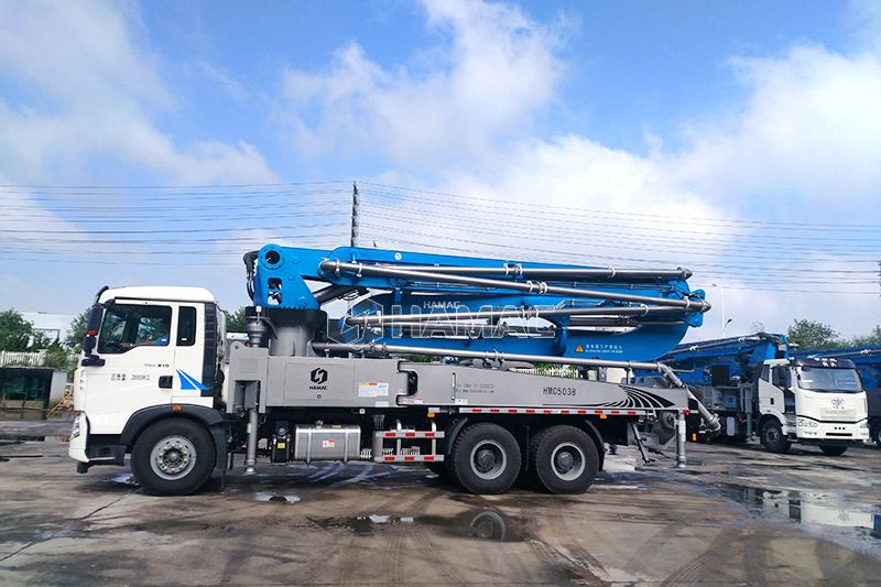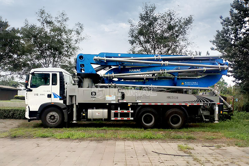 Le bras vertical du camion-pompe mesure 38 mètres de long, la distribution horizontale peut atteindre jusqu'à 34 mètres et la profondeur de distribution maximale est de 25,7 mètres. Il s'agit d'un camion pompe à béton de petite et moyenne taille produit par notre société, et c'est également un modèle très populaire sur le marché.