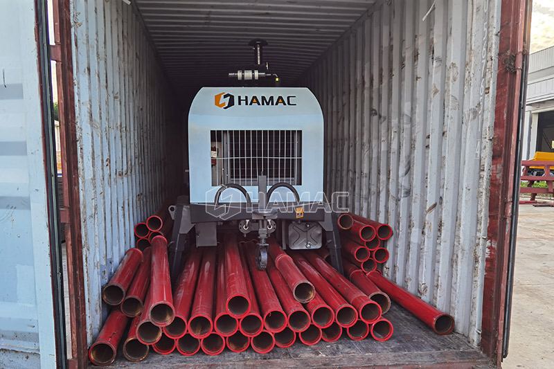 En tant que fabricant mature de machines de pompage de béton, HAMAC a conçu cette série de pompes à béton sur remorque qui convient à différents projets. Elle est équipée de composants de marque célèbres tels qu'un moteur électrique, un moteur diesel, une pompe à huile hydraulique, des vannes, des joints et un tuyau, etc. Cette pompe à béton peut être utilisée pour pomper le béton avec des agrégats de 40 mm maximum. Elle est également appelée pompe à béton sur remorque de type vanne S.
