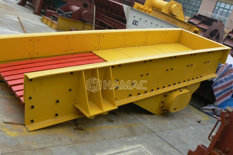 L'alimentateur vibrant est également appelé alimentateur vibrant. Dans le processus de production, le chargeur vibrant peut alimenter les matériaux massifs et granulaires de la trémie de stockage au concasseur primaire ou au concasseur secondaire de manière uniforme, opportune et continue. Dans certaines lignes de production, alimentateur vibrant ou machine d'alimentation, l'alimentateur vibrant peut alimenter uniformément et en temps opportun les matières premières pour les machines de concassage et effectuer un criblage grossier des matériaux par grizzly bar, qui est largement utilisé dans la métallurgie, la mine de charbon, l'habillage du minerai, les matériaux de construction, industries chimiques et autres.