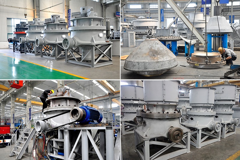 Lors du travail, le moteur entraîne la rotation de l'arbre horizontal, l'arbre horizontal entraîne le manchon excentrique pour tourner à travers l'engrenage, puis le manchon excentrique entraîne le cône mobile à se balancer en cercle, de manière à presser et écraser continuellement les pierres.