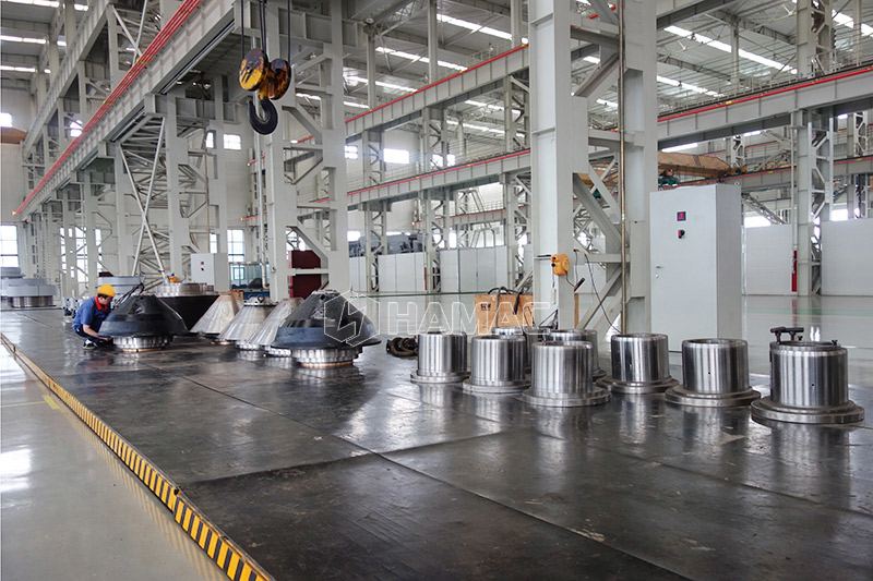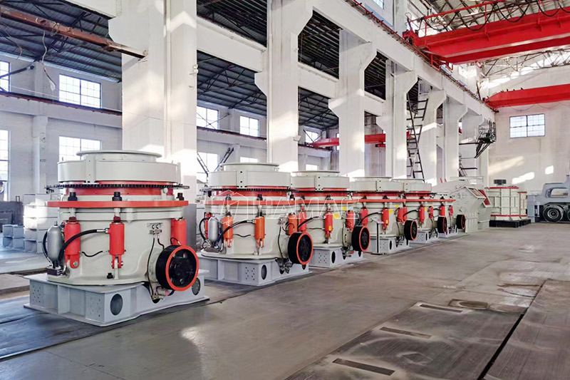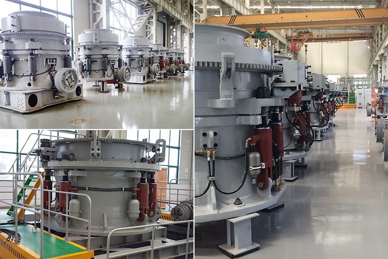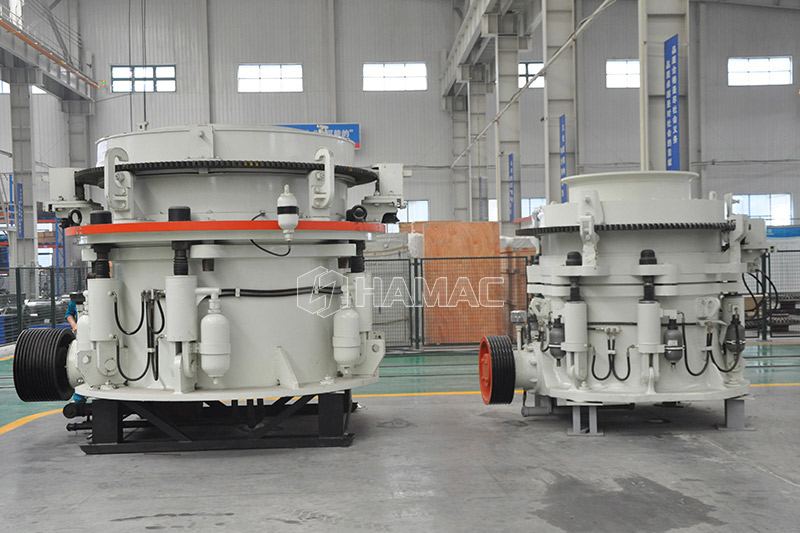 - 1. Haute efficacité : la machine adopte la structure optimisée de l'arbre principal fixe et du petit arbre sphérique, qui est de 5 % à 15 % supérieure à l'efficacité de l'ancien concasseur à cône à ressort.