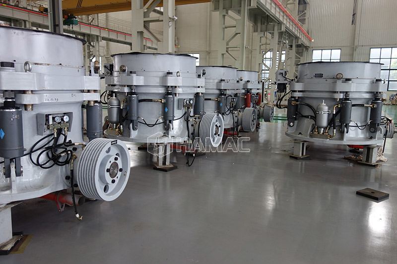 - 2. Grande capacité de production : La machine est conçue avec une combinaison parfaite de course de concassage, de vitesse de concassage et de forme de chambre de concassage, de sorte que la sortie de cette machine est de 35 % à 60 % supérieure à celle de l'ancien concasseur à cône à ressort sous le même taille du cône de concassage.